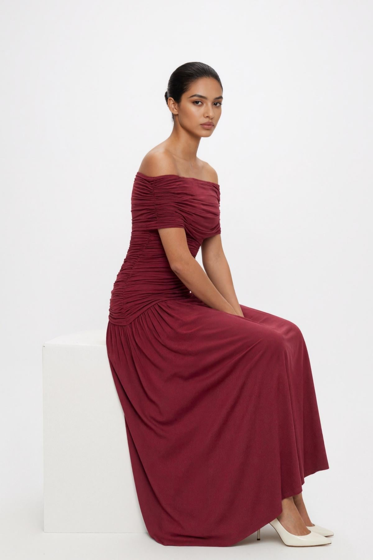Camille Off-shoulder Maxi Dress • Burgundy
